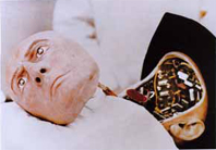 Vier Männer fressen und vögeln sich in einer grotesken Orgie zu Tode.
