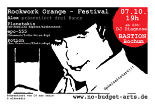 Am Freitag, dem 07. Oktober 2005, eröffnet [no-budget-arts] um 19h mit einer weiteren Ausgabe des Rockwork Orange Festivals die Spielzeit 2005/2006 in der BASTION.