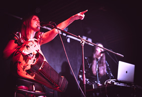tAngerinecAt sind ein queeres Electronic-Duo aus Wales. Die ursprünglich aus dem ukrainischen Kiew stammende Zhenia Purpursky und Paul Chilton sind Songwriter, Produzenten, Komponisten und Multi-Instrumentalisten, die mit einer satten elektronischen Produktion, ihren Stimmen, einer Drehleier und manchmal auch nur einem Pfeifen eine faszinierende Soundwelt erschaffen. Ihr aktuelles Album Glass stürmte an die Spitze der Bandcamp-Charts, wurde von der BBC gespielt und von Louder Than War unter die 100 besten Alben des Jahres 2022 gewählt. Es erzählt die persönliche Geschichte Zhenias als multiethnische queere Flüchtende aus dem Arbeitermilieu und Überlebende eines komplexen Traumas. Die Einflüsse von tAngerinecAt reichen von Künstlern wie Son Lux, Gesaffelstein, Fever Ray, Nick Cave & The Bad Seeds und My Dying Bride über ethnische Musik der ukrainischen Karparten bis zu den Filmen von Sergey Parajanov. Nach einer erfolgreichen UK-Tour beginnt die Band ihre ausgedehnte Glass-Europa-Tour im Mai mit einer Show auf dem Wave-Gotic-Treffen in Leipzig.
